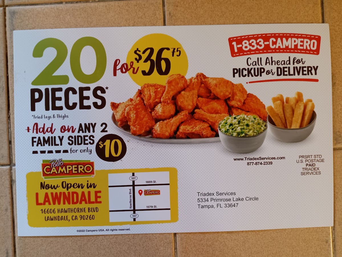 If you're looking for a flavor-packed meal, Pollo Campero Lawndale Menu has you covered. Located at 16606 Hawthorne Blvd, Lawndale, CA, this spot is the perfect place to enjoy a variety of mouthwatering dishes that will have you coming back for more. Whether you're in the mood for juicy, crispy fried chicken, flavorful grilled options, or some tasty sides, there's something here to satisfy every craving.